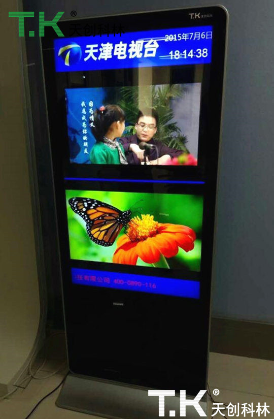 天创科林的可根据用户需要量身定制,32—55寸型号齐全,还可根据客户需求设计版面窗口。产品融合了业界先进的电脑技术、多媒体技术、音响技术、网络技术、机械制造技术等于身,利用图片、文字、动画、音视频等元素构建炫酷显示效果,可实现播放信息远程集中控制、集中管理、实时发布,并支持多种直播源、支持分屏播放、滚动字幕等,方便快捷,宣传效果震撼。